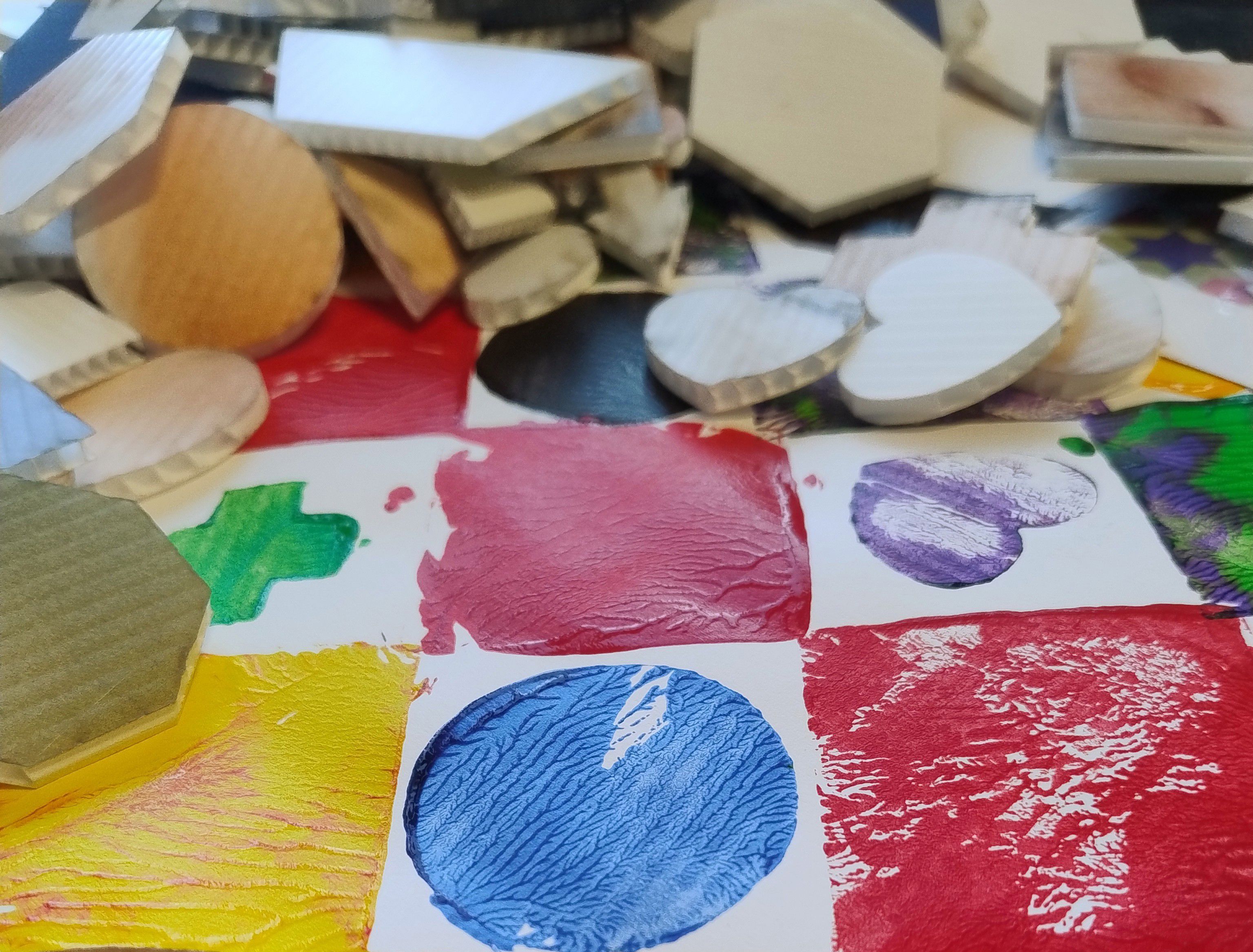 Vi arbejder med en række sjove og eksperimenterende teknikker, hvor børnene kan lave deres egne tryk med genbrugsmaterialer, og forvandle dem til personlige kunstværker. Det er bæredygtigt, sanseligt og fuld af skaberglæde.